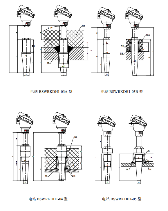 電站測(cè)溫用熱電偶/阻主要用于測(cè)量蒸汽管道及鍋爐的溫度,他采用保護(hù)管與鎧裝熱電偶/阻分體結(jié)構(gòu)方式,使用時(shí)客戶(hù)直接將保護(hù)管焊接到設(shè)備上,然后裝上鎧裝熱電偶就可以測(cè)溫了。這種安裝使用的優(yōu)點(diǎn)是既可以提高熱電偶/阻的工作壓力和使用壽命,又可以便于維修或更換。目前這種結(jié)構(gòu)形式被國(guó)內(nèi)外廣泛采用。