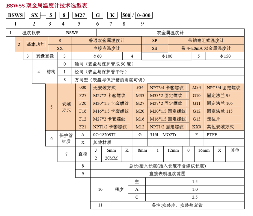 公司設計生產BSWSS工業(yè)雙金屬溫度計,產品規(guī)格品種齊全,包含普通的雙金屬溫度計,電接點式,萬向型,帶遠傳的雙金屬溫度計和帶4~20mA輸出的雙金屬溫度計。安裝方式種類齊全,套管規(guī)格多,完全能夠滿足客戶的定向需求。同時為了適應市場需求,設計雙金屬溫度計與套管分離,以保證在不停機的前提下,更換雙金屬溫度計。