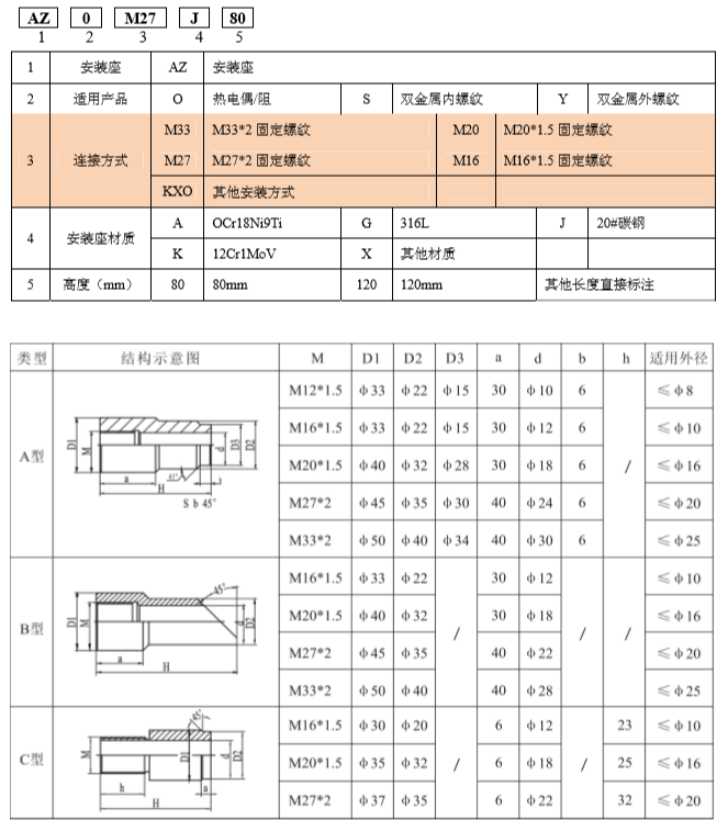 安裝底座選型表